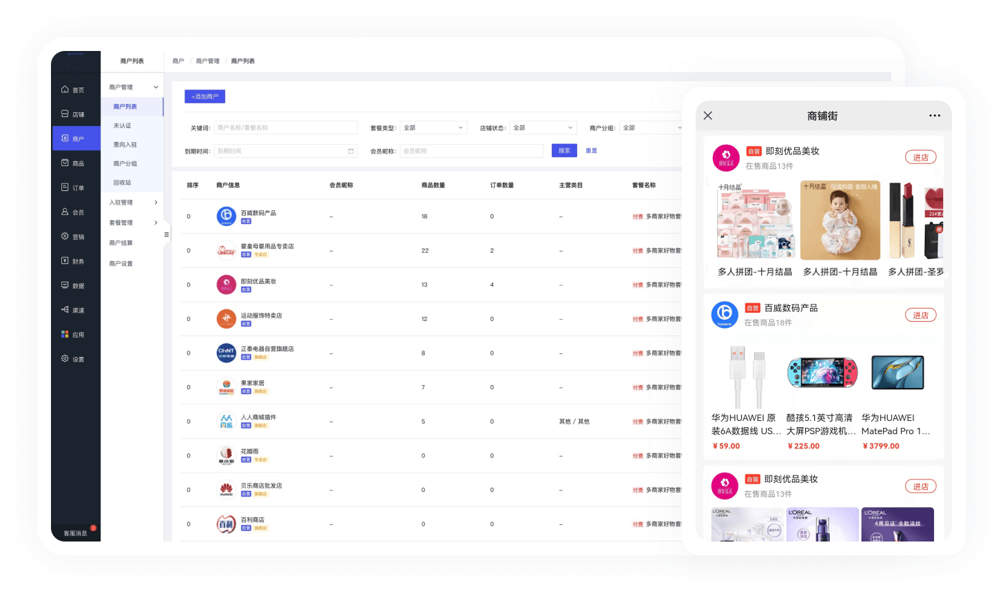 智慧商城多商家平台,支持平台自营与商户入驻共存模式